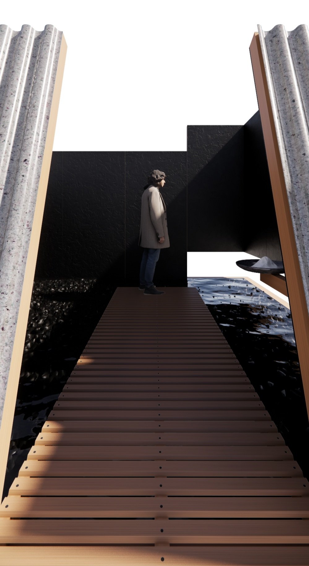 A pop-up installation to memorialize a war against art at the Hoxton Docks in London. Designed to fly under the radar of planning authorities by blending with the industrial site, visitors will find an intimate reflection pool to enjoy a space that was meant for their eyes only.